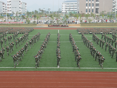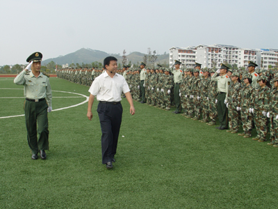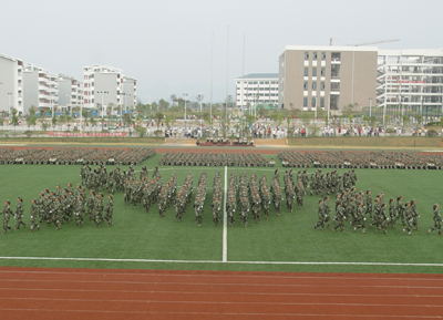 10月14日下午,我院2008级新生军训总结表彰大会在雁山校区体育场隆重举行。 迎着金秋灿烂的阳光,27个连队3300多名新生站着笔直的军姿,在体育场上荣光焕发、精神抖擞地等待着汇报自己刻苦军训的成果。学院党委副书记张学洪,党委副书记、纪委书记赵君,副院长李祥清,副院长肖明贵,桂林市武警支队书记张勋玮,武警支队副队长、2008级军训团团长周玉璟,学院党委委员、院长助理华桂林,党(院)办主任莫坷、学工部部长熊英以及各系院有关领导出席军训总结表彰大会并在主席台就座,学院武装部部长崔光仁主持大会。 16:00,在庄严雄壮的《国歌》乐曲声中,2008级新生军训阅兵汇报表演正式开始。赵君副书记在军训团首长的陪同下检阅了全场的27个连队,并向教官和2008级新生们致以亲切的问候。 检阅完毕后,分列式开始。27个连队在教官的带领下,高喊着“严格训练,严格要求,努力学习,报效祖国”的口号,踏着正步一一走过主席台,接受领导的检阅。接着,由300名新生组成的擒敌连喊着“严格训练,严格要求”的响亮口号进场。随着教官的一声令下,一整套擒敌拳伴随着有力的口号完美地打出,他们动作整齐,身姿矫健,整个场面气势恢宏,精彩的表演博得在场观众一片喝彩。擒敌连刚下,女子列操连便唱着《一二三四》军歌进场了。200多人的连队,在教官的指令下,唱着清脆而嘹亮的军歌踏着整齐有力的步伐,不断变幻出各种优美的队形,她们精彩的表演让人赏心悦目。 张学洪副书记宣读了《关于表彰2008级学生军训先进集体和个人》的决定,在主席台前排就座的领导为各先进集体和个人颁发了奖状及证书。 周玉璟队长和李祥清副院长发表了讲话,对2008级新生和全体教官在军训中所取得的成绩给予充分肯定。李祥清副院长代表学院向出色完成军训工作的部队首长和教官致以崇高的敬意和衷心的感谢,高度赞扬了新生不怕苦、不怕累的训练精神,并希望新同学们继续发扬这种精神,以良好的精神面貌投身到大学学习生活中去,刻苦学习,团结奋进,报效祖国。 在嘹亮的《军歌》声中,2008级新生军训总结表彰大会圆满结束。