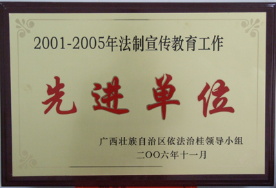 我院荣获自治区“2001—2005法制宣传教育工作先进单位”荣誉称号