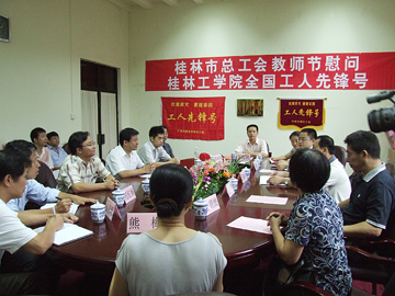 值第二十四个教师节来临之际,桂林市总工会党组书记、副主席张耀中等市总工会领导及市教育工会领导来我院慰问全国工人先锋号,开展“鲜花送劳模 喜迎教师节”活动,并与我院支援四川灾区抗震减灾技术专家组专家进行座谈。学院党委副书记、纪委书记、工会主席赵君出席会议,工会副主席陆平,学院支援四川灾区抗震减灾技术专家组专家等参加会议。在座谈会上,桂林市总工会党组书记、副主席张耀中代表桂林市总工会向我院“全国工人先锋号”专家送上慰问金和象征着美好祝福的鲜花。 张耀中副主席在座谈会上对我院支援四川灾区抗震减灾技术专家组表达了崇高的敬意,并向在教育事业上呕心沥血、尽职尽责工作的我院广大教师表达了节日的问候。张耀中副主席说,专家组发扬“一方有难,八方支援”的精神,不怕艰苦,每天工作15个小时,顶着风雨、冒着余震的威胁,对郫县9个乡镇和县城的公用建筑、民用建筑进行了技术评估和勘测,同时还充当了灾情和科普知识的讲解员,为灾区抗灾减灾工作做出了突出贡献,专家组是教师群体中的杰出代表。 我院支援四川灾区抗震减灾技术专家组成员王磊博士在会上作了发言,介绍了在四川灾区抗震救灾的具体情况。 赵君副书记说,长期以来,市总工会对Beat365官网的工会工作高度重视,十分关心,特别是在这次汶川大地震我们派出抗震救灾专家组的工作中,得到了市总工会的大力支持。赵君副书记代表学院党委和行政对市总工会的亲切关怀表示衷心感谢,并希望市总工会今后一如既往地关心支持我院的各项工作。