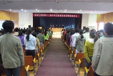 12月24日上午8:30,600余学员齐聚民教部礼堂,隆重举行学院第12期中共预备党员培训班结业典礼。党委组织部部长、党委党校副校长兼教务长赵君同志,党委宣传部部长、统战部部长、党委党校校务委员于海平同志,党委学工部部长、党委党校副教务长、校务委员熊英同志,学院团委书记、党委党校校务委员辛立章同志,学院党委办公室、院长办公室副主任、党委党校校务委员唐壮东同志等领导在主席台就坐。各党总支、直属党支部书记、各分党校校长也出席了结业典礼。结业典礼由党委学工部部长熊英同志主持。 大会首先由党委宣传部部长于海平同志宣读了党委党校第十二期预备党员培训班“优秀学员”评选结果。党委党校校务委员给张涛等30名获得“优秀学员”荣誉称号的学员颁发了荣誉证书。接着进行了学员交流,郭尚其等10名各系(院)学员代表先后上台发言,畅谈培训中的感悟和收获。 最后,党委组织部部长赵君同志代表组织部和党委党校对培训工作进行了总结。他首先肯定了培训班取得的成绩,认为本期培训班在教学安排上突出了针对性,在培训内容上突出了时代性,在培训过程中强化过程管理,突出了党校培训的严肃性。同时,他也指明了培训工作中存在的不足和今后努力的方向。赵部长要求党委党校和各分党校,要高度重视党校培训工作,加强对学员的管理监督,不断提升党校培训的效果。最后,赵部长还对广大学员提出了殷切的期望:要进一步端正入党动机,坚定走有中国特色的社会主义道路的理想信念;要努力提高理论水平和解决实际问题的能力;要在今后的学习、工作和生活中更加严格地要求自己,不断提高理论水平、不断提高党性修养,切实发挥党员的先锋模范作用,不断为建设有中国特色的社会主义事业做出新的更大的贡献。 上午十时许,结业典礼在庄严神圣的国际歌中落下了帷幕。