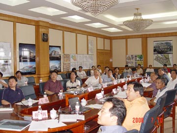 7月10日下午,我院召开雁山校区修建性详细规划方案评审会。会议由学院院长赵艳林主持,桂林市副市长潘建民,桂林市建设规划委员会、桂林市规划局、桂林市建筑设计院的领导和专家出席了会议;学院党委书记阳国亮,学院副院长周德俭、阮百尧、肖明贵,雁山校区建设指挥部成员,发展规划处、基建处负责人等参加了会议。 同济大学规划设计院唐子来等专家在会上介绍了雁山校区的两个不同的规划方案。第一方案的总体原则是体现地域特色,彰显人文精神,融入自然环境,面向社会开放,形成有机生长的大学校园;建筑形态为街市+村落+山水;整个校园的功能布局分为公共活动中心、教学功能区、生活功能片区、实习研发片区、管理服务片区五个区;还介绍了建筑风貌设计引导、市镇共用设施规划等内容。接着又介绍了第二方案。 与会的领导、专家讨论并发言,提出了一些建设性意见。