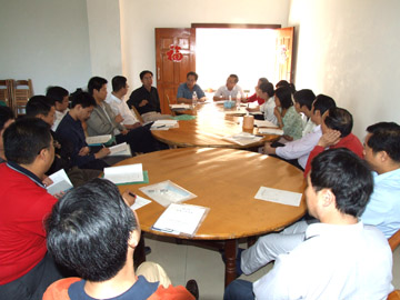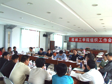10日下午,在培训中心会议室,陈贵英部长传达了自治区党委书记郭声琨同志和自治区党委常委、组织部部长陈际瓦同志在全区组织工作会议上的讲话精神,并结合实际,就学院2008年组织工作进行了部署。随后,伍飞军副部长作了关于组织发展工作的辅导报告;李军朝副部长就党委组织部对学院各党总支组织发展工作督查的结果进行了通报。