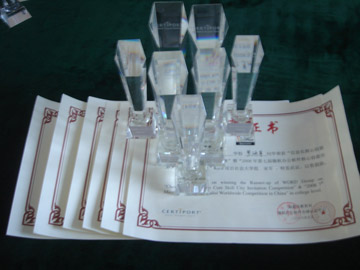 个人奖项获得两冠军、两亚军和一季军的奖杯和证书