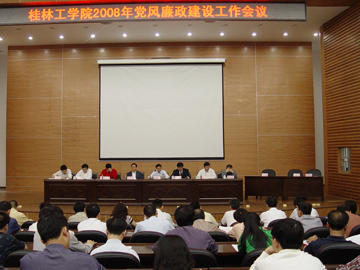 4月9日上午,学院在图书馆报告厅召开2008年党风廉政建设工作会。会议由学院院长赵艳林主持,学院党委书记黎志逘,党委副书记张学洪,党委副书记、纪委书记赵君,副院长李祥清,副院长阮百尧,副院长肖明贵,党委委员、院长助理华桂林出席会议并在主席台就座。学院副处以上领导干部,勘查院、监理公司、附属小学负责人参加会议。