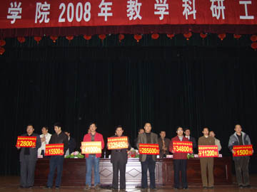 会上,阮百尧副院长、张学洪副书记分别作了教学工作、科研工作报告,对2007年教学、科研工作进行了回顾和总结,对2008年教学、科研工作作了周密部署;李祥清副院长、肖明贵副院长分别宣读了教学、科研表彰决定,对2007年度教学、科技工作先进集体、先进个人进行了表彰和颁奖,先进集体代表资源环境工程系党总支书记王敦球、先进个人代表李景文老师分别作了发言。