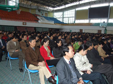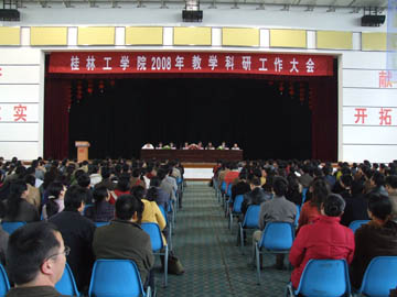 4月2日下午,我院2008年教学科研工作大会在体育馆三楼隆重召开。会议由学院党委副书记、纪委书记赵君主持,学院院长赵艳林,学院党委副书记张学洪,副院长李祥清,副院长阮百尧,副院长肖明贵,党委委员、院长助理华桂林出席会议并在主席台就座。自治区知识产权局综合管理处处长蔡穗南受自治区科技厅党组书记、厅长陈大克和自治区科技厅副厅长、自治区知识产权局局长杜伟同志的委托也出席会议并在主席台就座,全院教职工参加了会议。
