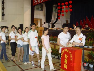 大会分组对第七届委员会工作报告进行了讨论,推选了第八届委员会委员候选人预备人选,审议并通过了第八届委员会候选人名单、大会选举办法(草案)和第七届委员会的工作报告,并以无记名投票方式选举出了27名第八届委员会委员。在大会中,管理学院分团委书记张海东还向与会代表宣读了践行“八荣八耻”的倡议书。大会圆满地完成了各项会议议程胜利闭幕,学工部部长熊英致闭幕词。