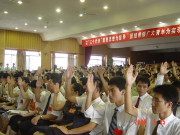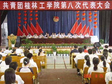 6月25日,我院第八次共青团员代表大会在南校区礼堂隆重举行。大会由学院团委副书记陶剑飞主持,300多名团员代表参加。学院党委副书记张学洪,共青团桂林市委书记刘迎春、学院党委组织部部长赵君、学院第七届团委书记江云清、湖南科技学院团委书记张建利、桂林各兄弟院校团委书记以及各系(院)分团委书记等出席了开幕式并在主席台就座。出席大会开幕式的还有学院各有关职能部门以及各系院党总支(直属支部)的有关领导。