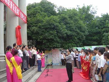 6月18日下午,桂林市社会科学普及基地揭牌仪式在桂林市图书馆榕湖分部举行,我院近40名学生干部冒着高温,在学院社科联负责人的带领下,参加了揭牌仪式。仪式开始前,我院学生干部主动帮助桂林市图书馆工作人员布置会场。他们清理图书馆门前积水、铺红地毯、整理基地牌上的红绸,干得汗流浃背,良好的精神风貌赢得桂林市社科联和图书馆工作人员的交口称赞。 我院党委书记阳国亮研究员也应邀出席揭牌仪式并和我院学生干部合影留念。 揭牌仪式结束后,学生干部们还听取了桂林市社科联副主席、桂林市旅游学会会长庞铁坚高级经济师所作的科普讲座。我院管理学院、人文社会科学系部分教师也参加了这次活动。