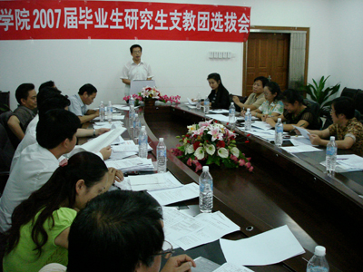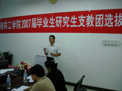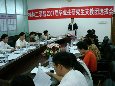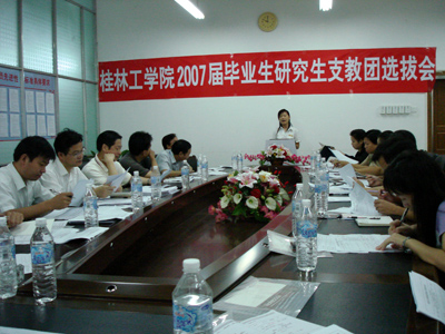 另悉,校团委将组织统一体检,按照本次评审会议评出的候选人排名情况,选出5名体检合格的同学,正式组建桂林工学院扶贫接力计划第九届研究生支教团。招募工作结束后,志愿者们还将参加教学实习、统一培训等系列准备活动,并于2007年8月奔赴西部地区开展为期一年的扶贫支教工作。