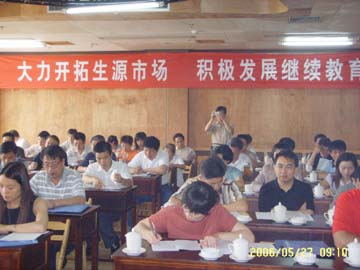 为了更好地总结、部署、交流、研究我院成人教育工作,一年一度的成人教育工作会议于2006年5月27-28日在桂林兴安召开。学校主管领导周德俭副院长、各教学单位主管成教工作领导、各函授教学站点负责人、成教院全体工作人员等共计50余人参加了会议。会议主要议题和内容包括:(1)学校主管领导周德俭副院长就成教工作面临的形势、特点和任务发表讲话、作出指示;(2)成教院吴郭泉院长对2005年的成教工作进行总结,对2006年的成教工作进行部署、提出要求;(3)成教院徐建平副院长就教学有关问题和学分制实施方案作出说明,进一步明确教学工作的有关规定和要求;(4)成教院邹长光副院长对2005年招生工作进行总结,对2006年招生形势和招生工作进行通报和部署;(5)宜州函授教学站代表就函授站招生宣传、教学工作介绍经验和体会,供与会代表参考;(6)针对会议内容和成人教育工作面临的形势与任务进行座谈、讨论和交流,对函授站点教育教学工作中的有关问题进行现场咨询和解答。会议内容丰富,代表参与积极。我们相信,通过本次会议的总结、交流和研讨,一定能为我院成人教育事业的发展注入新的思想和活力,使我院成人教育事业能在激烈的竞争中保持良好的发展态势,为学院的建设与发展做出新的更大的贡献。