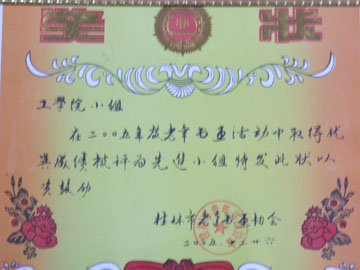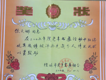 我院老年书画协会因工作成绩显著,被桂林市老年书画协会评为2005年度先进单位;张文娜同志在2005年度老年书画活动中取得优异成绩被评为先进个人。特此报喜。