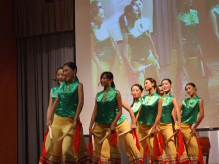 桂林工学院大学生艺术团在泰国皇家理工大学曼谷校区表演的节目《踏歌》