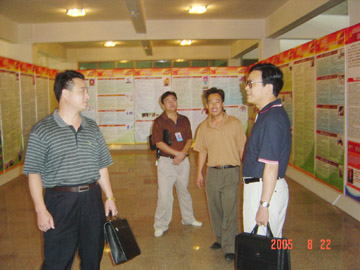 8月22日下午,在自治区高校先进性教育活动桂林片督导组组长李善辉及成员张月光和伍飞军等同志的陪同下,自治区先进性教育活动指导七组卢家翔、曾纪芬两位同志来我院指导工作。 指导组查看了我院先进性教育活动简报,抽查了党员学习笔记,听取了学院先进性教育办公室主任赵君同志对我院先进性教育活动学习动员阶段的特色经验、亮点做法以及做好下一阶段即分析评议阶段的工作计划的汇报,还参观了我院的先进性教育活动宣传展。卢家翔同志说,桂林工学院在开展先进性教育活动方面体现出了三大特点,一是学院领导高度重视,认识到位、工作到位、方法到位,体现出了高度的责任心和使命感;二是措施扎实有力,要求严格;三是活动氛围营造得好。对于如何做好转段工作和分析评议阶段的工作,指导组给予了认真而详细的指导。
