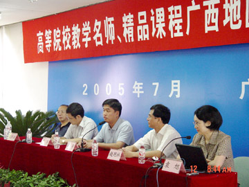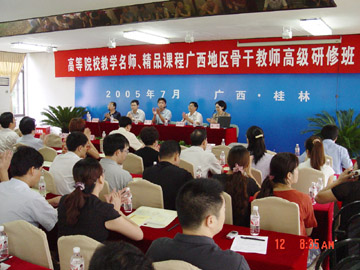 为进一步加快我区高等教育发展,加强高校间精品课程教学科研交流,根据广西教育厅《关于举办高等院校教学名师、精品课程广西地区骨干教师高级研修班的通知》(桂教高教[2005]82号),由国家教育部主办、广西区教育厅协办、桂林工学院承办的“高等院校教学名师、精品课程广西地区骨干教师高级研修班”于2005年7月11至14日在桂林市召开。来自全区58所高校的250 多位教学一线、经验丰富的资深教师各校领导参加了本次研修班。 在研修班简洁的开幕式上,教育厅高教处袁旭副处长担任主持;赵艳林院长代表学院致欢迎词并简单介绍我院情况;区教育厅黄宇副厅长代表教育厅讲话,简单介绍了举办高等院校教学名师、精品课程广西地区骨干教师高级研修班的目的和意义并对本次研修班寄予了深切厚望。开幕式后,教育部高教司理工处林宇副处长做了专题报告。 整个培训班由来自全国7所院校的国家教学名师、国家级精品课程负责人及专家到会讲授,结合各门国家级精品课程的研究与实践,就国家级精品课程的建设等议题进行了专题讲座。为期三天的培训班在听取专家讲授、充分交流、认真研讨中很快度过,各高校教师通过本次研修班拓宽了交流平台,开阔了眼界并获得相关学科科研前沿信息,为进一步做大做强广西高校精品课程奠定了坚实的基础。