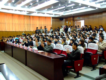 王明旨教授介绍了我国与国外艺术设计的起源与发展,围绕“艺术设计学科应该怎样培养人、怎样办学”这一问题,对我国与国外的艺术设计教育现状进行了比较,指出了中国艺术设计教育与国外的差距和今后的努力方向。他认为,我国艺术设计教育应该重视加强对学生的创造力和综合素质的培养,重视综合、交叉学科的探索,重视办出地方的与自己的特色。王明旨教授还就学生们现场提出的关于就业与创业、考研、艺术设计与工业设计专业的发展前景等问题一一进行了详细的解答。 王明旨教授除任清华大学副校长外,还担任全国美术协会的副主席,是我国工艺美术方面的学界泰斗,他的报告生动风趣,又紧密结合实际,针对性强,不时地引起了师生们会心的笑声和热烈的掌声。