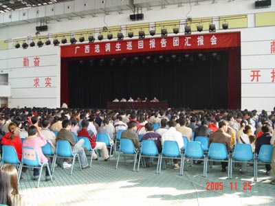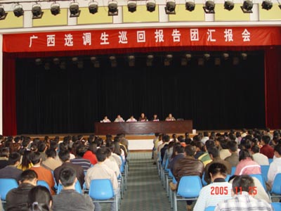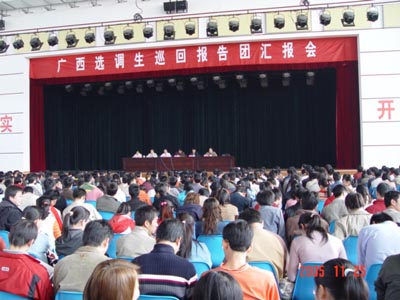 11月24日下午3:00,学院在体育馆三楼举行广西选调生巡回报告会,会议由学院党委张学洪副书记主持,我院全体2006届毕业生以及桂林医学院部分毕业生代表参加了会议。