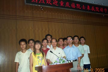 童院士的报告是他上月在全国第十五届遥感学术技术交流会上作的首席发言的报告,对我国遥感学科发展具有战略指导意义。他以亲自参加制定的《我国科学技术中长期发展规划——遥感技术发展规划》为主题,通过大量详实精美的资料,介绍了我国遥感空间信息技术在连续5个五年计划中得到国家大力支持的情况及其重要应用领域,重点讲述了我国遥感学科当前存在的主要问题和面临的巨大挑战。在此基础上, 童院士介绍了我国遥感技术发展的战略与对策。他充满激情地说道:“国家第十个五年计划即将结束,过去的一页即将翻过,新的一页即将翻开。国家中长期科技发展规划即将付诸实施,新的曙光已展现在我们面前。这是我们每一个遥感科技工作者的光荣、骄傲和不可推卸的历史使命。让我们行动起来,以新时代的革命激情投入到新的战斗中,以加倍的努力去创造新的辉煌!”