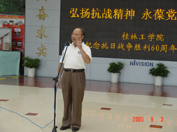 9月3日上午,我院纪念抗日战争胜利六十周年宣传展在教九楼一楼大厅隆重开幕。此次宣传展结合保持共产党员先进性教育活动而举办,主题为“弘扬抗战精神、永葆党的先进性”,展出的主要内容是我院旅游学院副教授周述忠同志收藏整理的桂林抗战时期的图片、实物、报刊等历史史料。 开幕式由学院党委宣传部部长于海平主持,周述忠副教授、学生会主席张瑞同学分别作了发言,学院党委组织部部长赵君、学院党委书记阳国亮先后发表了讲话。 阳书记在讲话中代表学院党委和行政首先对我院纪念抗战胜利六十周年宣传展顺利开幕表示衷心的祝贺,并对周述忠副教授为学院开展爱国主义教育和保持共产党员先进性教育所做出的贡献表示衷心的感谢。他说,周述忠副教授以实际行动体现了桂工精神和共产党员的先进性,全院师生员工都要向周述忠老师学习。阳书记强调,在观看展览的时候要注意看到中国共产党在中国人民赢得抗日战争胜利的过程中所处的重要历史地位,同时要深刻领会中国共产党在抗日战争中所表现出来的先进性。抗日战争的历史证明:中国共产党及其领导的人民武装力量,是全民族利益最坚定的维护者,是团结抗战的中流砥柱,是取得抗战胜利的决定性力量。中国共产党由于始终高举争取民族解放的大旗,在最困难的条件下坚持敌后抗战,坚持团结全国最大多数人的抗日民族统一战线政策,从而得到了人民的信任。中国人民在抗战中,进一步认识到了只有中国共产党才是代表广大人民群众根本利益的先进政党。 开幕式结束后,大家观看了展览,并进行了观展签名留念。