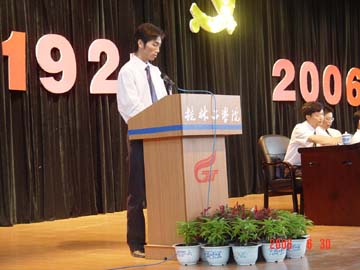 6月30日下午,学院在体育馆三楼隆重召开庆祝中国共产党成立85周年暨表彰大会。学院全体共产党员,民主党派代表、无党派代表参加了庆祝大会,学院党委书记阳国亮,党委副书记、院长赵艳林,党委副书记、纪委书记唐善茂,党委副书记张学洪,副院长周德俭、阮百尧、肖明贵,党委委员赵君、解庆林出席了大会并在主席台就座。大会由学院党委副书记、纪委书记唐善茂主持。 在庄严雄壮的《国际歌》乐曲声中,与会人员全体起立,庆祝大会正式开始。学院党委副书记、院长赵艳林在大会上宣读了自治区高校工委关于表彰先进基层党组织、优秀共产党员、优秀党务工作者的决定和学院关于表彰先进基层党组织、优秀共产党员、优秀党务工作者的决定。我院机关党总支第5支部、资环系党总支、材化系党总支、旅游学院党总支学生第2支部荣获全区高校先进基层党组织,王德安、李景文、张发爱等10名共产党员荣获全区高校优秀党员荣誉称号,石柱鑫、江云清、莫坷、耿俊茂、胡祖生5人荣获广西高校优秀党务工作者荣誉称号。获得学院先进基层党组织的总支或支部共12个,优秀党员97名,优秀党务工作者7名。大会为以上获奖先进集体和个人举行了颁奖仪式,还为在6月29日晚廉政歌曲大赛中的获奖单位举行了颁奖仪式。 先进基层党组织代表材化系党总支书记胡祖生、优秀共产党员教师代表李景文、优秀共产党员学生代表朱宗强、优秀党务工作者代表黄中康先后在大会上发言。他们表示,今后要再接再厉,加强学习,努力工作,充分发挥共产党员的先锋模范作用,充分发挥基层党组织的核心作用和战斗堡垒作用,为学院“两申”目标的实现作出新的更大的贡献。 在大会上还举行了预备党员入党宣誓仪式。由学院党委组织部副部长伍飞军领誓,学院预备党员在党旗下进行了庄严的宣誓。 学院党委书记阳国亮发表了讲话。阳书记首先代表学院党委向学院全体共产党员致以节日的问候,向获得自治区高校工委和学院党委表彰的先进基层党组织、优秀共产党员和优秀党务工作者表示热烈的祝贺,向在党旗下庄严宣誓的新党员们表示热烈的祝贺,并希望他(她)们恪守入党誓言,为共产主义事业奋斗终身。在巩固保持共产党员先进性教育活动成果、雁山新校区建设已经启动、“两申”工作正在深入推进,50周年校庆庆典即将到来,我院改革与发展的任务极其艰巨而繁重的当前形势下,阳书记向学院广大共产党员提出三点希望:一是要继续发扬和巩固先进性教育活动的成果,建立先进性教育活动的长效机制;二是要切实加强各级领导班子建设,更好地发挥各级领导班子的领导核心作用;三是要充分发挥党组织的政治核心、战斗堡垒作用和党员的先锋模范作用。最后阳书记号召学院全体共产党员,要更加紧密地团结在以胡锦涛同志为总书记的党中央周围,高举邓小平理论伟大旗帜,认真实践“三个代表”重要思想,全面贯彻党的教育方针,按照学院党委、行政的有关部署,进一步弘扬桂工精神,同心同德,艰苦奋斗,励精图治,开拓创新,为创造桂林工学院美好明天而努力奋斗,为桂林工学院的蓬勃发展作出新的更大的贡献!