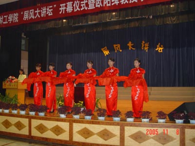 学院团委陶剑飞副书记首先宣布“屏风大讲坛”正式开幕,阳国亮书记、梁军处长、邹正光处长、陈先华处长、秦宏毅主任为“屏风大讲坛”开幕进行剪彩。学院党委阳国亮书记发表了重要讲话。阳书记首先代表学院党委、行政祝贺“屏风大讲坛”隆重开幕,他说,当代社会面临提高人文素质,包括思想和道德两方面问题。“屏风大讲坛”就是我院提高人文素质的一大舞台,它将完善“科学知识”、“人文知识”两大课堂。同时他对“屏风大讲坛”的前景寄予了殷切期望,希望能将讲坛办成一个锤炼大学生人文素质的大熔炉,并通过“屏风大讲坛”培养国家栋梁之材。
