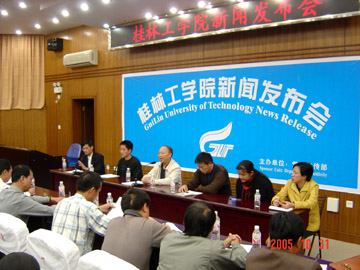 10月31日下午,由党委宣传部主办的桂林工学院新闻发布会在9501教室召开。新闻发布会由党委宣传部部长于海平主持,学院党委书记阳国亮、党委副书记张学洪、研究生处副处长饶似娟、招生就业处副处长熊英、国际交流处赫德老师出席了新闻发布会。参加发布会的有新华社、中国新闻社、中国改革报、中国产经新闻报、中国旅游报、西部时报、法治快报、广西日报、广西电视台、广西电台、桂林日报、桂林电视台、桂林电台、桂林晚报、南国早报等15家媒体的记者和桂林工学院大学生记者团记者等。 党委副书记张学洪首先进行了新闻发布,他说,“第六届全国地方性本科院校招生工作协作会”将于11月1日—11月4日在我院隆重召开,来自26个省、市、自治区的166所高校将参加本次招生协作会,这次招生协作会将总结和研讨新形势下招生工作的新经验和新策略,进一步加强跨区域跨校际间的协作与交流,促进生源结构的进一步优化。届时,我院将和与会的各高校签署对等招生协议,为明年的跨省招生提前作好准备。张学洪副书记还告诉记者们,我院大学生文化艺术团将在学院党委书记阳国亮的带领下,于11月13—23日访问泰国,参加泰国一年一度的“水灯节”活动。同时,对泰国部分高校进行考察访问和学习,以促进两国校际间的文化交流与留学生工作的开展。 随后,举行了答记者问,我院领导对记者提出的问题做了一一回答。阳国亮书记强调,我院秉承为广西教育发展服务的宗旨,努力办好“第六届全国地方本科院校招生协作会”,他表示,此次招生协作会将会促进广西教育事业的发展,使广西在校学生能够更多的走向全国各大高校,并欢迎各大高校到广西招生,更好地落实“科教兴国强国战略”、“人才强国战略”。关于我院大学生文化艺术团出访泰国,他指出,这将会加强与东南亚各国的文化交流,也是我院大学生国际文化交流的一次重要突破,对推动我院办学事业的发展具有重要意义。 本次新闻发布会全面介绍了我院在招生、就业及国际文化交流等方面的情况,让更多媒体了解桂林工学院,对宣传“桂工精神”也起到了积极的作用。 为活跃本次会议的氛围,促进相互之间的交流与沟通,学院将会在11月1日晚在体育馆三楼为大会组织专场招待文艺晚会。