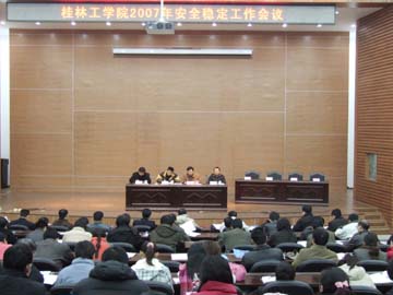 1月18日下午,我院2007年安全稳定工作会议在图书馆报告厅召开。学院党委副书记张学洪、副院长李祥清、党委组织部部长赵君、人事处处长华桂林在主席台就座,各单位、各部门(含社区办、附小)党政主要负责人,有学生的系(院、部)党总支副书记,全体学工干部、保卫干部参加了大会。大会由赵君部长主持。 李副院长在会上作了安全稳定工作报告,在回顾2006年学院安全稳定工作情况时指出,学院始终把确保校园安全、维护校园稳定放在重要位置,从落实科学发展观,构建社会主义和谐社会的高度,积极营造和谐平安校园,切实加强了学院的安全稳定工作,为维护学院正常的教育教学秩序,保证师生员工工作学习生活的正常进行,促进学院建设发展做出了应有的贡献。一年来安全稳定工作成绩主要表现在:安全工作做到了常抓不懈;安全保卫工作得到了进一步加强;学生安全教育和管理工作取得良好成绩;校内和周边环境得到了一定程度改善。学院还在思政网络和舆论管理、食堂安全卫生管理、消防安全管理、防范和处理邪教活动以及学院50周年校庆活动的安全保卫等方面做了大量工作。正因为如此,学院2006年全年没有发生有重大影响的政治事件、刑事案件及重大安全责任事故,院内治安状况良好,学院被评为七星区社会治安综合治理先进单位,并在自治区综合治理委员会和教育厅高校工委2006年度安全文明校园检查评估中受到好评。李副院长还对2007年的安全稳定工作进行了部署,要求各单位、各部门:1、强化认识,进一步增强维护安全稳定工作的使命感和责任感;2、加强教育和管理,切实搞好服务;3、加大安全排查整改力度;4、强化信息管理,全面提高学院安全稳定工作管理水平和应急能力;5、强化责任,建立和健全学院安全工作责任制和责任追究制;6、加大安全稳定硬件投入力度,建立学院安全稳定通报机制和安全稳定评比制度。 报告结束,由学院党委副书记张学洪和李副院长分别代表学院党委和行政与各单位、各部门负责人签了《桂林工学院2007年社会治安综合治理和安全稳定工作目标管理责任书》和《桂林工学院2007年消防管理目标管理责任书》。 张副书记在会上还传达了中共中央办公厅、国务院办公厅关于《党政机关国内公务接待管理规定》和关于做好元旦春节期间有关工作的通知,广西壮族自治区纪委关于两节期间加强领导干部廉洁自律工作的通知,广西壮族自治区教育厅关于做好学校诺瓦克病毒性肠胃炎防治的工作要求。
