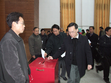 1月12日全天,学院在图书馆一楼报告厅举行了2006年度干部述职测评大会。51名正处级干部和主持工作的副处级干部进行了年度述职测评。学院党委副书记张学洪同志、副院长阮百尧同志分别担任述职测评工作领导小组的组长和副组长,副院长李祥清、周德俭、肖明贵等院领导出席了会议,大会由党委组织部部长赵君同志主持。参加测评的基本群众评委共有90人,由来自各个部门的中层干部代表、教代会代表、各部门职工代表组成,其中中层干部87人,占总数的96.7%;教代会代表67 人,占74.4%;教师代表53人,占58.9%;各级先进人物74 人,占总人数的82.2%;民主党派和无党派人士占5%以上。大会以现场无记名方式对51名述职干部进行了测评。