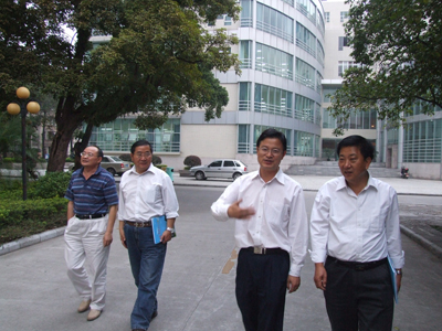 阮百尧副校长(右二)陪同杨生德总工程师(右一)一行参观屏风校区校园