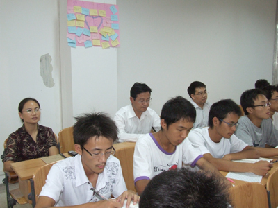 阮百尧副校长(后排中)在雁山校区听课