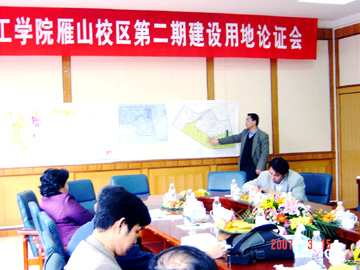 目前,我院雁山校区第一期建设工作稳步推进,第二期建设的相关工作也随之启动。3月15日,由雁山区人民政府组织的“桂林工学院雁山校区第二期建设用地论证会”在教八楼会议室召开,来自桂林市发改委、建规委、国土资源局、林业局、环保局、农业局和雁山区发改局、建设局、国土资源局、林业局、农业局的领导,按照新土地法对土地规划的要求,对我院雁山校区第二期建设用地征收土地《土地利用总体规划》调整进行了各方面的论证。我院雁山校区建设指挥部副指挥长陈慕杰在论证会上向领导们介绍了第二期建设用地的规划方案,并同时代表学院对桂林市各级政府和部门对我院第一期工程建设的支持表示感谢,希望各级政府和部门继续支持学院的建设。