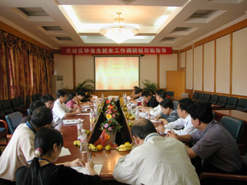 10月19日上午,全区高校毕业生就业情况调研组一行四人在广西民族学院学工处处长邓艳葵的带领下莅临我院检查指导毕业生就业工作。 在教八楼会议室,调研组认真听取了院党委副书记张学洪教授对我院2004年毕业生就业工作及2005年工作设想的汇报,并对我院毕业生就业工作取得的成绩给予了肯定。会后,调研组对我院毕业生就业工作支撑材料(包括协议书、聘用函等)进行了核查,并随机抽检了部分毕业生的就业情况。之后,调研组结合抽查的情况,对我院毕业生就业工作中存在的问题提出了宝贵的意见和建议。 这次区高校毕业生就业情况调研是对我院毕业生就业工作的一次全面检查,对今后我院毕业生就业工作的开展具有极大的促进作用。