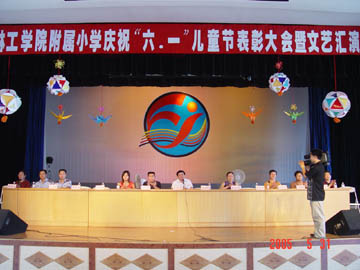 5月31日,附属小学在南校区礼堂举行庆祝“六一”儿童节表彰大会暨文艺汇演。 应邀前来参加活动的嘉宾有学院李祥清副院长、人事处陆娟娟副处长、民族基础教学部周荣华副主任、后勤集团蒋德岗副总经理、共青团桂林市委员会少年部吴晓罡部长、七星交警大队黎晓晖副大队长等13位领导。 李祥清副院长在大会上做了热情洋溢、激动人心的讲话。他首先代表学院领导向全体学生表示节日的祝贺,向工作在第一线的老师们表示亲切地慰问。接着他充分肯定了附小历年来为社会作出的较大贡献,培养出了后来就读于哈佛大学和清华、北大等国内外知名学府的许多优秀学生。他还勉励附小全体师生要与时俱进、开拓进取,充分利用好大学这一新的平台所提供的资源和优势,发扬和承继附小的优良传统,争取把附小办得更有特色、更有水平、更有知名度,办成桂林市、甚至全区小学的品牌。最后,他代表工学院给附小赠送了一台崭新的复印机,极大地激励了老师和同学们的工作和学习热情。 附小陆校长在会上表彰了一批一年来取得突出成绩的老师和学生,并鼓励大家再接再厉,刻苦拼搏,借助学院为附小提供的平台,把附小推上一个新的台阶。各位嘉宾为本学期获得桂林市优秀辅导员、优秀队员、优秀队干光荣称号的老师和学生颁发了奖状。 随后,举行文艺演出,同学们表演了歌舞、相声、双簧等丰富多彩的节目,整个会场掌声雷动,笑声不断,同学们在欢乐中庆祝自己的节日。