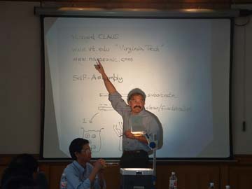 Clause教授是光纤传感器以及材料学专家,曾获美国国家多项重大奖项,如2001年获美国弗吉尼亚州杰出科学家称号;2000年获美国新世纪发明奖;1999年获美国工程协会诺尔曼奖。Clause教授同时也是几个重要协会的会员。上午9点,在教八楼会议室Clause教授给材化系的师生们做了一场精彩生动的学术报告。