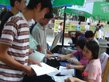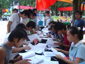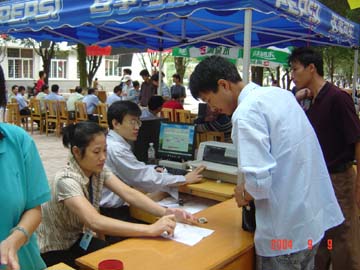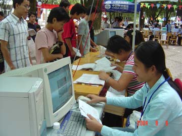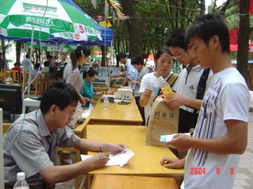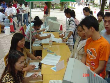 9月8-9日,盛装的桂工校园老树林中心广场一片繁忙景象。在此,我院迎来了2004年入学的3200名新生。对此,学院领导高度重视,党委书记阳国亮、院长赵艳林等院领导亲临迎新现场检查指导,学院各院、系围绕着新生入学认真做好各项工作。据悉,今年是我院招生最多的一年,为做好迎新工作,学院党政各部门齐心协力、紧密配合,为圆满完成迎新工作任务付出了艰辛的劳动。他们热情周到的服务,为广大新生尽快融入桂工大家庭营造了温馨和谐的氛围。