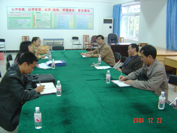 12月22日,广西工学院代表团一行59人来我院考察评估工作。上午8点20分,在教八楼会议室,代表团观看了我院的评估专题片,周德俭副院长向代表团介绍了我院迎评工作的做法和经验。随后,代表团分8个组到评估办和各个系、部进行了参观与交流。