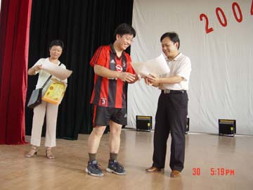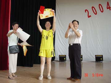 6.颁奖仪式。院党委副书记、院工会主席唐善茂教授给冠军队材化分会颁奖状和奖金。
