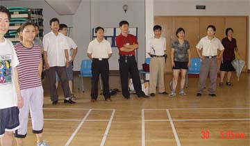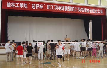 2004年6月21日桂林工学院首届“迎评杯”职工羽毛球比赛开赛,历时6天,分三个阶段进行总打25场球,到目前为止所有预定赛程已完满结束。 一、获得前六名的分会有:第一名:材化分会;第二名:图书分会;第三名:电计分会;第四名:管理学院分会;第五名:资环分会;第六名:医院分会。 二、获得参与奖的队有:土木、机关、现代教育中心、后勤集团、数理、产业、社科、外语、教务、体育等分会。 羽毛球协会、综合管理处是这次比赛的承办单位和协办单位,为了使这次比赛活动能顺利进行,他们付出了辛苦的劳动,做了大量的工作在此我代表院工会委员会对他们的辛勤劳动表示忠心感谢!同时对全体工作人员的努力工作和裁判员的艰苦劳动和公正裁决表示由衷感谢。