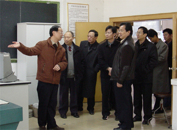 3月1日上午,自治区科技厅黎明智副厅长一行到我院检查指导重点实验室建设工作。随行成员还有发展计划处李昌华处长、桂林市科技局林业江局长等领导。我院领导阳国亮党委书记、赵艳林院长、张学洪副书记、周德俭副院长参加了本次工作汇报。 在学院二会议室,周德俭副院长向区科技厅领导汇报了我院近期重点实验室建设工作,并就学院结合“两申”目标,在重点实验室建设上的各项投入一一做了简明扼要的介绍。听完介绍后,自治区科技厅黎明智副厅长对我院的重点实验室建设工作给予了充分肯定,并在院领导的陪同下到材化系实地了解重点实验室建设情况。