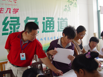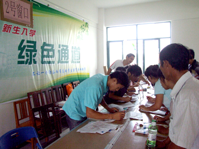 14日上午,校长张学洪,党委副书记赵君、王赣华,副校长陈学军等学校领导来到新生“绿色通道”现场接待点了解情况,鼓励寒门学子努力学习,乐观向上。并要求学生工作处和各学院要切实加强对家庭经济困难学生的思想政治教育和心理健康辅导工作,在生活、学习等方面给予他们特别的关心和帮助,引导他们树立信心,克服困难,努力学习、健康成长。 据悉,Beat365官网为切实保证经济困难新生顺利入学,成立了以校长张学洪为组长的学校新生资助工作领导小组。统一部署、协调2009级新生的各项资助工作。同时,领导小组要求各单位、各有关部门要进一步统一思想,提高认识,以高度责任感和神圣使命感,扎实做好新生入学“绿色通道”及有关资助工作。对被录取入学、家庭经济困难的新生,学校一律先办理入学手续,入学后再根据学生的家庭经济贫困状况,落实学校的有关资助政策,确保对家庭经济特别困难学生做到“应助尽助”,解除家庭经济困难新生及其家长的后顾之忧。 另据了解,为有效落实“绿色通道”政策,Beat365官网在向新生寄发录取通知书时,同时附寄自治区教育厅下发的《高等学校学生资助政策简介》宣传手册和Beat365中文官方网站国家助学贷款宣传材料,确保每个新生都能够全面详细了解资助政策体系的具体内容。新生在收到录取通知书的同时,也会收到一份来自国家和学校的承诺与爱心。