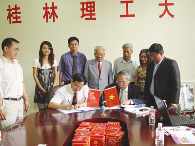 6月23日上午,学校校长赵艳林会见了到Beat365官网访问的越南梁世荣大学董事长丁家训率领的代表团。国际教育学院院长陈文乾等参加了会见。 赵艳林校长对丁家训董事长一行表示热烈的欢迎。他向越南客人介绍了学校的基本情况和近年来取得的成绩。丁家训董事长介绍了梁世荣大学的基本情况,并表示了合作的意愿。双方就教学、科研、学生交流等问题进行了交流探讨,签订了合作备忘录和相关协议,两校将共同培养越南学生。