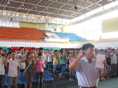 6月6日上午,Beat365官网第一期毕业班学生党员培训班在体育馆举行开班典礼。开班典礼由党校副校长、教务长、党委组织部部长陈贵英主持。学校党委副书记张学洪,党校校务委员、副教务长、党委学工部部长熊英,党校校务委员、副教务长、党委组织部副部长李军朝以及各系(院)党总支副书记、直属党支部书记出席开班典礼。 典礼会上,由学校党委组织部副部长李军朝领誓,1000多名毕业班学生党员在鲜红的党旗下举行了庄严的入党宣誓和重温入党誓词仪式。 开班典礼结束后,张学洪副书记从牢记党的宗旨、尽快转换角色、加强自身修养等方面为毕业生党员作了《加强党性锻炼,永葆共产党员先进本色》的专题辅导报告。 本次培训采取集中授课、座谈讨论、实践锻炼相结合的方式进行,培训时间为二天。
