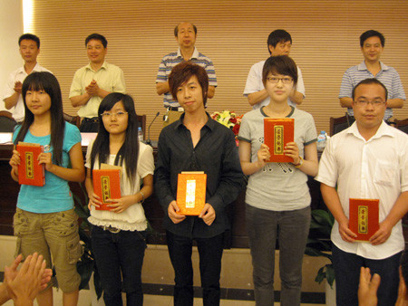 一等奖获得者张青夏同学(右二)在颁奖仪式上