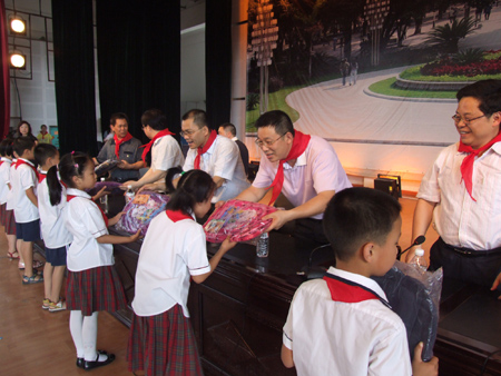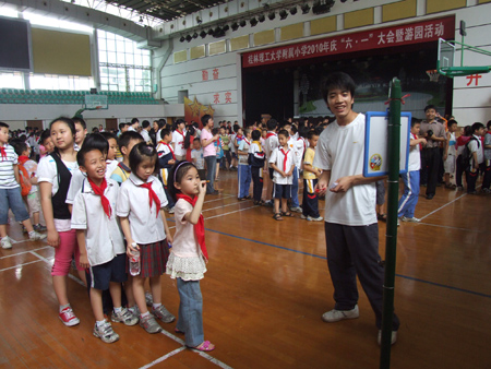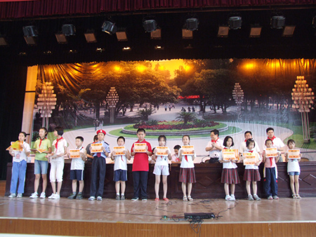 在六月一日国际儿童节到来之际,学校附属小学在体育馆三楼举行了庆“六一” 表彰大会暨游园活动。学校校长张学洪,副校长吴志强,学校有关部门负责人与孩子们欢聚一堂,共同庆祝六一儿童节。 兴高采烈的同学们为与会领导系上了红领巾,张学洪校长、吴志强副校长等与会领导为同学们赠送了节日的礼物。吴志强副校长代表张学洪校长和学校向同学们表示节日的祝贺,并提出殷切期望:要树立强烈的爱国主义精神,长大后为祖国的繁荣富强多做贡献;要勤奋学习,努力掌握丰富的科学文化知识和过硬的专业技能;要常怀一颗感恩心,在优美的学习环境中勤奋学习,要感恩家长,感恩老师,感恩社会;要发扬团结友爱精神,在日常的学习和生活中增强友谊,遇到困难时敢于面对,迎接挑战。 附小陆东生校长在讲话中感谢学校一直以来的关心和支持,同时就附小一年来各方面取得的成绩作了回顾,表扬了获得各类奖励,尤其是参加全国或自治区比赛取得优秀成绩的老师和学生。鼓励大家再接再厉,刻苦拼搏,借助学校为附小提供的平台,把附小推上一个新的台阶。在主席台就座的领导们给获得表彰的师生们颁发了荣誉证书和奖状。 接下来便是学校精心为同学们设计的游园活动。他们一个个摩拳擦掌,充分做好了赛前的准备,开始了自己的“游园之旅”: 盲人击鼓、投掷乒乓球、投篮、丢沙包、点鼻子、投飞镖、夹玻璃球……一个个好玩有趣的游戏项目考验着同学们的耐心、细心,考验着同学们的眼力、手力。瞧!这边凝神静气,小心翼翼,斗智斗勇;看!那边生龙活虎,全力以赴,一争高低……. 一张张笑脸充满了幸福,一串串笑声飞出赛场。当自己成功获得胜利奖品时,同学们心里都乐开了花。