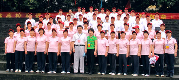 学校党委副书记、纪委书记、工会主席赵君(前排左七)与运动员合影