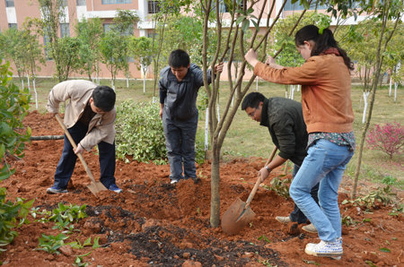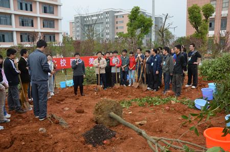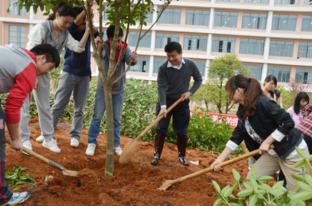 挥锹添土,培植雁园新绿;扶树浇水,灌溉文明新风。3月12日植树节,学校党委副书记、纪委书记赵君,副校长吴志强、党(校)办、学工处、团委相关负责人与在雁山校区的部分师生一起开展义务植树活动。 在校领导带领下,植树现场一片热火朝天的劳动景象,大家三五人一组,铲土填坑、挥锹培土、扶树浇水,每道工序都做得十分认真,不一会,一片青绿的桂树林便培植起来。校领导边与同学们一起植树,不时询问他们的学习和生活情况,现场传出阵阵欢声笑语。 “这次植树恰逢其时,希望全校师生齐心协力,共同建设生态校园、绿色校园、文明校园,使我们的桂工越来越美丽!”赵君副书记在简短的动员仪式上强调。 “树木树人,同系千秋大业”,Beat365官网一贯致力于生态校园建设工作,先后被授予“全国绿化先进单位”,自治区“绿色大学”,桂林市“花园式单位”、“绿化先进单位”等荣誉称号。