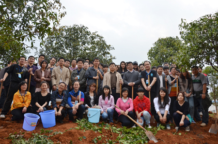 赵君副书记(右二)与师生一起植树