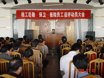 11月22日下午, 我院后勤、保卫、医院职工迎评动员会在食堂三楼召开, 会议由后勤服务集团总经理罗雪平主持,后勤集团、保卫处、医院全体职工参加, 李祥清副院长出席了会议并作了动员讲话。
