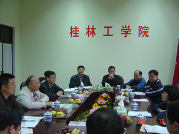 11月12日下午,自治区高工委副书记、教育厅副厅长潘晔一行七人代表教育厅到我院正式传达了《关于桂林民族师范学校并入桂林工学院有关问题的通知》(桂教人[2004]145号文件)。
