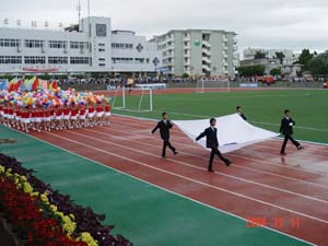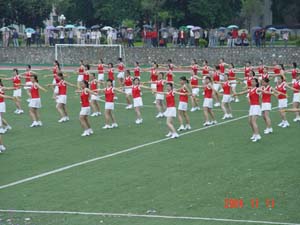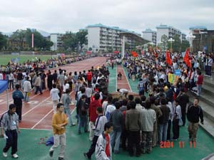 尽管天上飘着丝丝细雨,气温也有点低,但桂工学子对于运动会的热情弥补了这些缺憾。11月11日,学院第三十三届田径运动会在维修一新的运动场按时开幕。院领导阳国亮、赵艳林等出席开幕式,张学洪副书记致开幕词。运动员入场结束后,近百名身着红衣白裙的女同学在绿色人造草坪上为观众奉献了一台精彩的团体操表演,这一久违的景象赢得场外阵阵掌声。